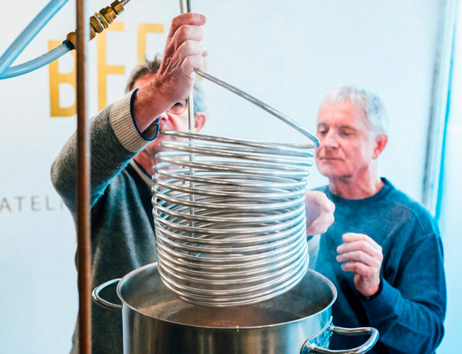 - Sélection de votre recette et fabrication de 15 litres de votre propre bière, étape par étape